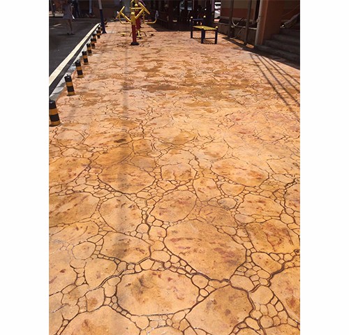 壓模工藝用于新澆筑的混凝土表面,能成型色彩艷麗并具有裝飾紋理的飾面。同時(shí)還具備單一混凝土所沒(méi)有的防腐、防滑、耐磨等特質(zhì),其效果遠超過(guò)花崗巖、大理石、青石板、木板及磚石等,可用于行車(chē)道、人行道、庭院和游泳池旁。